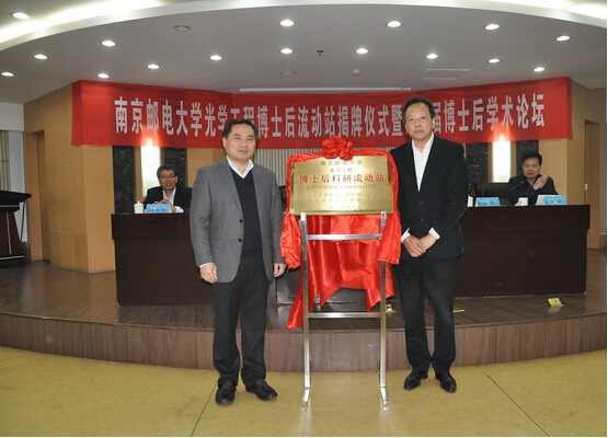 刘连军副主任和蒋国平副校长分别作了重要的讲话。仪式上,余强处长宣读批准设站文件,刘连军副主任和蒋国平副校长为光学工程博士后科研流动站揭牌。