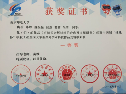 福利姬 由黄维院士、陈润锋教授指导的获奖团队共有6人,其中4名本科生,1名硕士研究生,1名博士生,充分体现了材料学院坚持“大师引领,团队育人”的先进理念,也是福利姬 一贯实施的本科生导师制度的不断实践创新,更是福利姬 “本-硕-博互动”培养创新人才的优秀成果代表。福利姬 鼓励本科生早进团队、早进课题、早进实验室培养科研素质以及团队协作精神,为未来继续从事学术研究工作或毕业从事相关应用工作奠定了坚实的基础,深受广大师生欢迎。