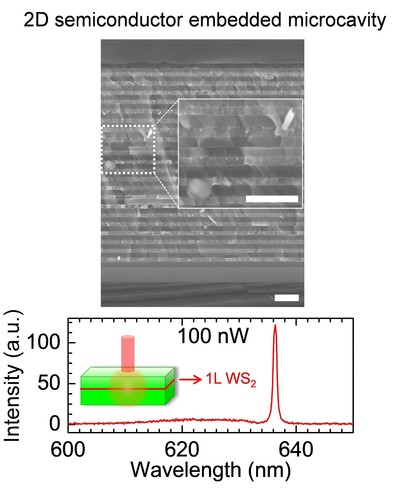 在这里,福利姬 黄维院士和新加坡南洋理工大学于霆教授的合作团队采用二维半导体材料作为增益介质并利用超薄的垂直谐振腔结构,在光泵下实现了室温低阈值连续的激光发射。技术上,二维半导体材料原子级平坦的特性以及易于制备和转移的优势使得二维半导体激活的垂直腔面发射激光器制备与当前成熟的半导体单片集成工艺非常兼容,因此,这类器件的实用化生产是非常值得期待的。这个工作推进了当前新兴二维半导体材料在现实光电领域的应用。该工作近期发表在自然通讯(Nature Communications 8, 543, 2017)