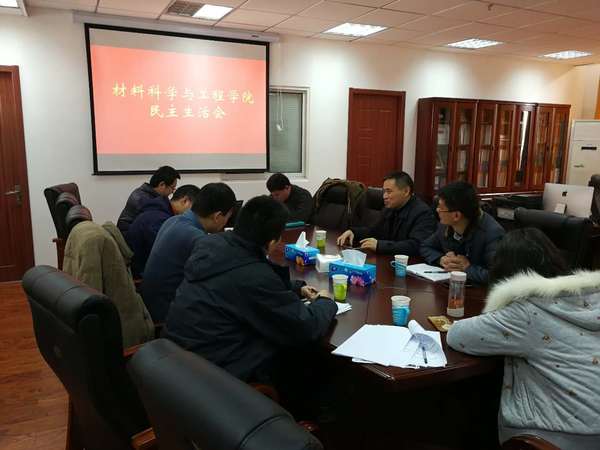 2018年1月11日中午,福利姬 在材料学科楼313召开民主生活会,蒋国平副校长莅临指导,材料学院副院长陈润锋、副书记于景宝参加会议,院长范曲立、副院长赵强、沈清明、院办主任刘丹列席民主生活会。会议由马延文书记主持。