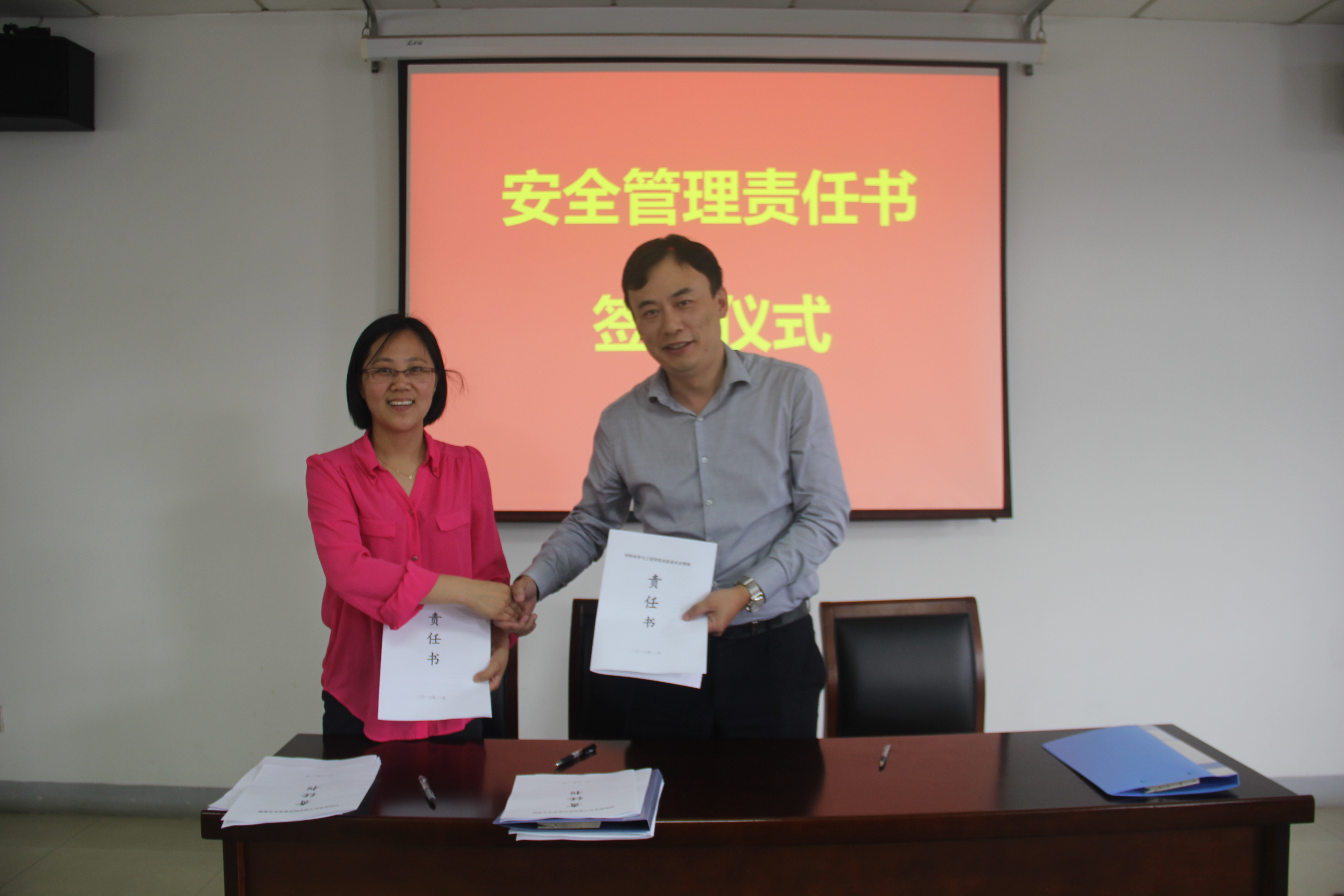 最后,范曲立院长、赵允玉书记代表学院与八大研究所所长、全体教职工签订实验室安全管理责任书,并要求各研究所加强日常安全教育,带领团队师生学习实验室安全管理制度等文件,确保每位师生都熟知实验安全的注意事项,并继续与所内的师生签订安全管理责任书,层层传达、层层落实安全责任,切实增强实验安全的红线意识和底线思维,改进实验习惯,提升安全管理水平,上下一心、全力以赴,筑牢实验室安全防线,为学院各项事业安全发展、科学发展、长远发展保驾护航。