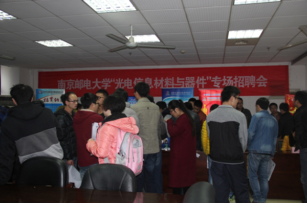 12月9号上午,福利姬 “光电信息材料与器件”专场招聘会在教5-413举行。招聘会共有14余家光电、材料领域的企业前来选聘贤才,提供了100多个研发、销售和管理岗位。参加此次招聘会的有上海华显、昆山国显、红宝丽集团、先进激光、康众光电、第壹有机光电、先丰纳米、华信藤仓、安普瑞斯、南京长江涂料、中盛光电等多家高科技企业。招生就业处饶林果副处长、学院党委书记李兴鳌、副院长马延文参加了招聘会,招聘会由党委副书记于景宝主持。
