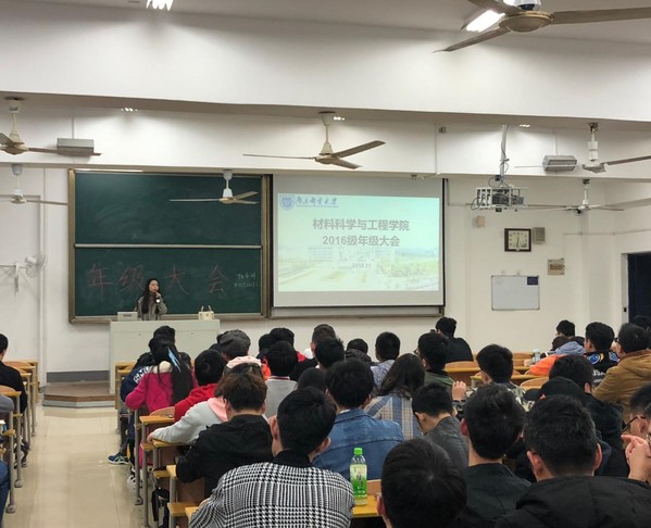 2016级年级大会在教三208顺利召开。此次大会由辅导员杨书丹老师主持,2016级全体本科生参加了此次年级大会。