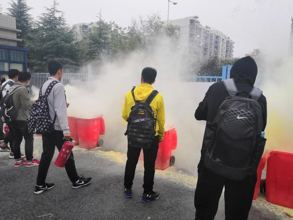 本次会议后,大家还参与了消防协会的现场培训,将班会中所学的应用到现实,同学们亲身体验使用灭火器,体验逃生帐篷,在游戏中学习了知识。