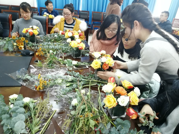 为陶冶教师情操,丰富福利姬 教职工的业余生活,12月17日中午12:00,福利姬 分工会开展了“材花云集 修身益心”插花活动,福利姬 百余位教师参加了此次活动。此次活动邀请了有着丰富经验的花艺老师现场介绍鲜花的保养与摆放等常识,详细介绍了插花花材的种类、用具,并进行现场插花操作,让大家在这个冬季体会到浓浓暖意。