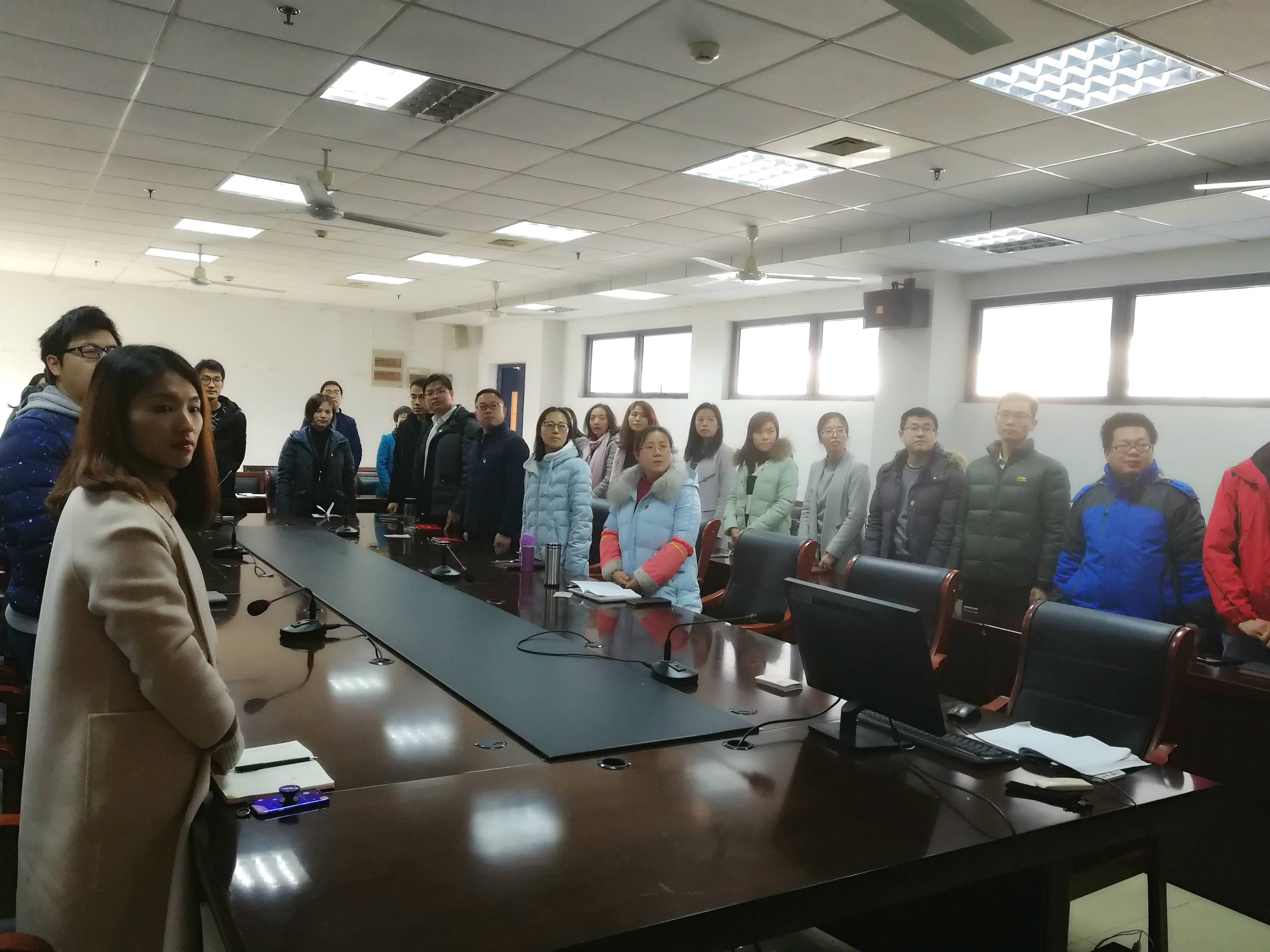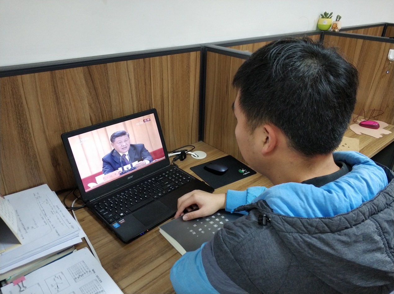 学院教师在学院会议室观看大会直播
