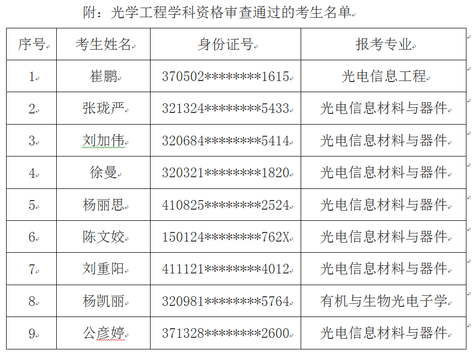 根据《福利姬 博士研究生招生“申请-考核”制招生办法(试行)》的要求,以及《福利姬 光学工程学科2019年博士研究生招生“申请-考核”制实施细则》的相关规定,光学工程学科申请考核博士生选拔领导小组根据考生所提交的申请材料,对其报考资格、基本素质和科研潜质进行了评估与初选,现对通过资格审查的考生名单予以公示(公示名单见附件),公示时间:2018年12月19日—2018年12月26日。