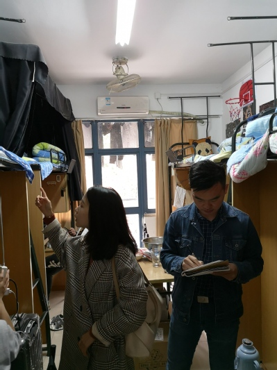 此次检查,重点在用电安全、寝室内接线板安放规范性、宿舍内使用明火现象、疏散通道通畅性、宿舍内杂物堆放情况等。老师们细致检查了每个宿舍,现场对存在的问题提出整改意见。