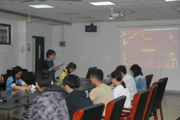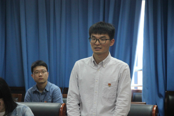 博士生党支部副书记张贺介绍支部情况及工作计划