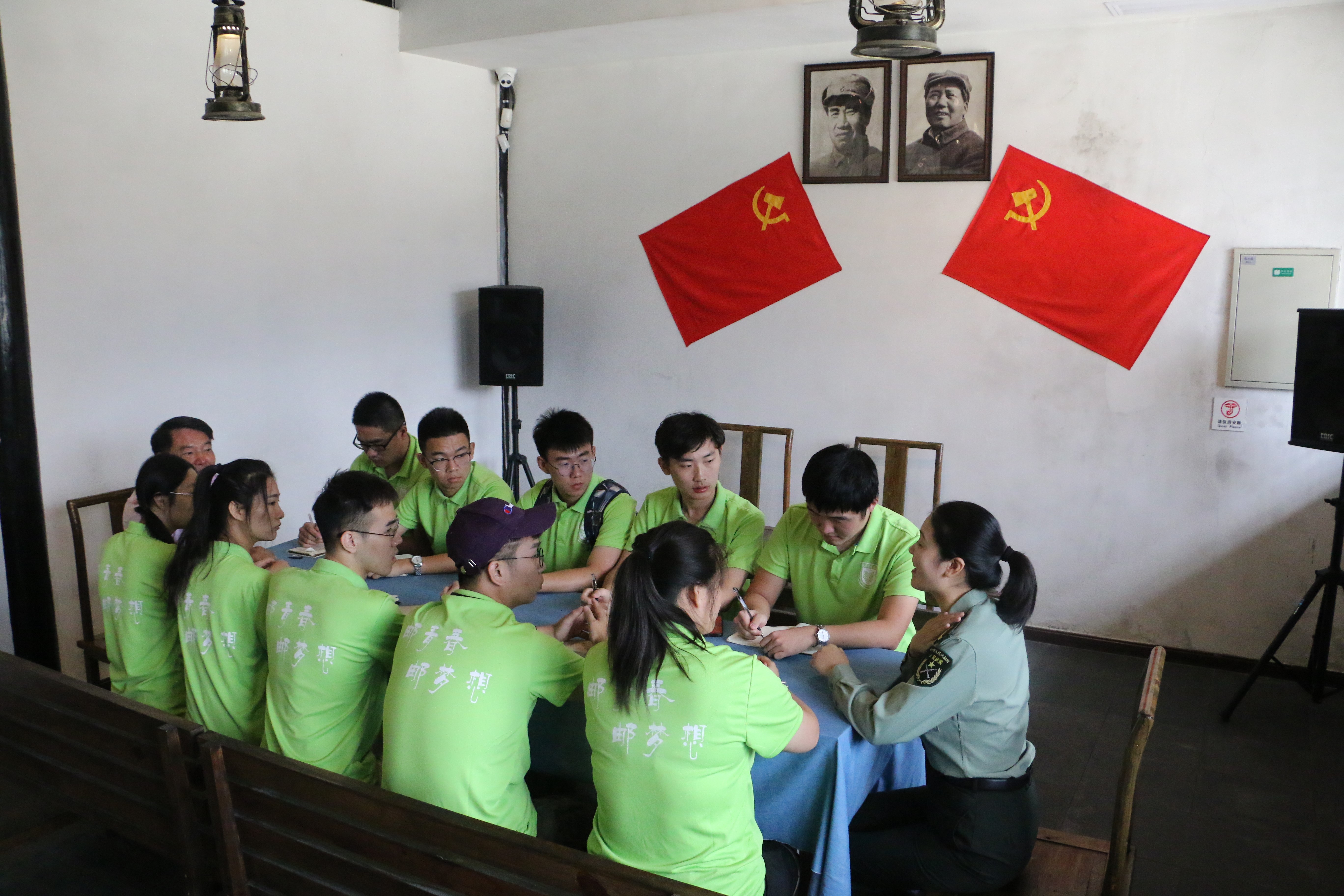 在军部旧址宣讲员的带领下,实践团聆听了主题为“不忘初心、牢记使命”的红色故事。队员们们寻找红色足迹,缅怀袁国平、徐嘉彪等革命先烈。这些故事感人肺腑、令人振奋,革命先辈的精神可歌可泣、值得传承。听完故事,队员们围绕“红色文化的传承”、“自身使命”、“理想信念”等多个话题展开讨论。于景宝副书记对同学们的想法表示了赞许与肯定,并指出大家要将将红色故事作为自身的精神营养剂,不忘初心、牢记使命。