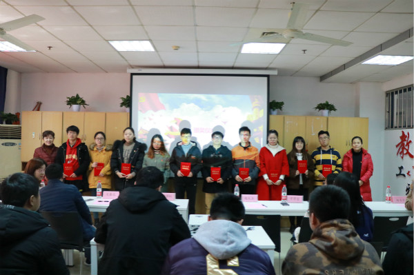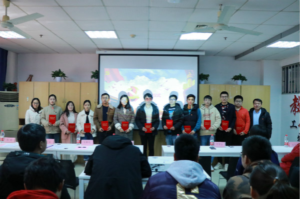 12月12日中午,学院党委在教5学院“党员之家”进行优秀获奖作品颁奖仪式。学院党委书记赵允玉、副书记兼副院长于景宝、特约党建组织员倪静虹、党委委员郑超、材料物理支部书记宋春元、学工支部书记杨书丹、分团委书记李娜和全体获奖同学参加了颁奖仪式,仪式由副书记兼副院长于景宝主持。