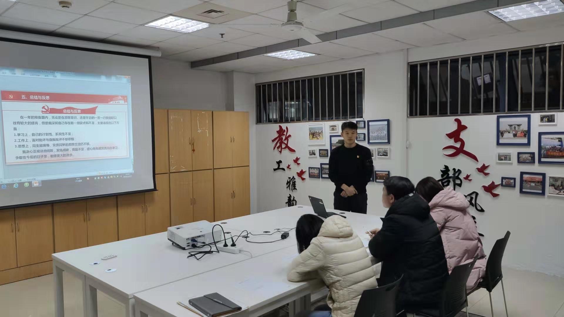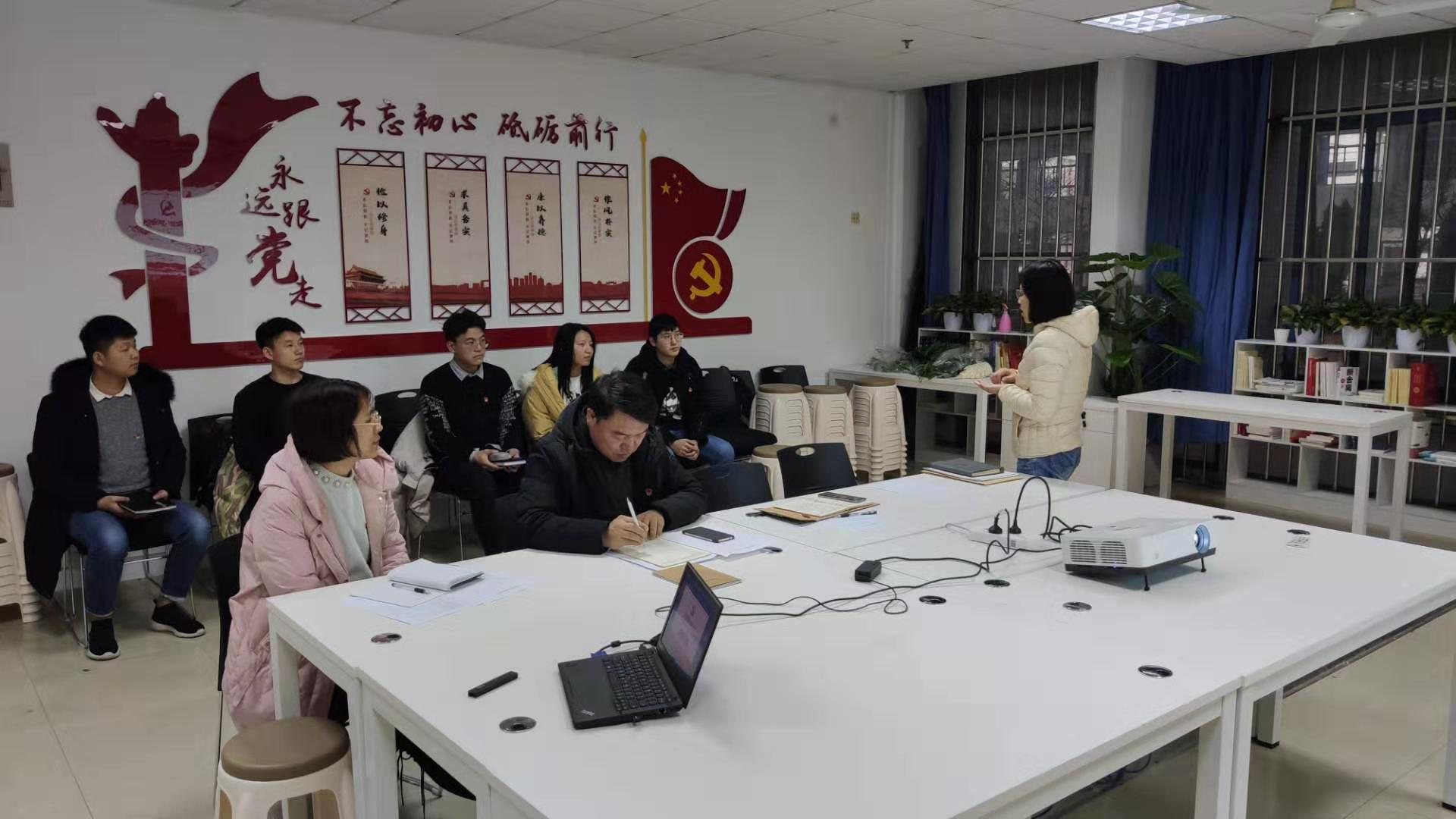 12月17日下午,福利姬 党委在教5-101党员活动室组织了预备党员转正答辩的抽检答辩活动,王武基等6名预备党员进行现场答辩,学院党委赵允玉书记、于景宝副书记、组织干事刘丽娜老师作为答辩老师进行检查。