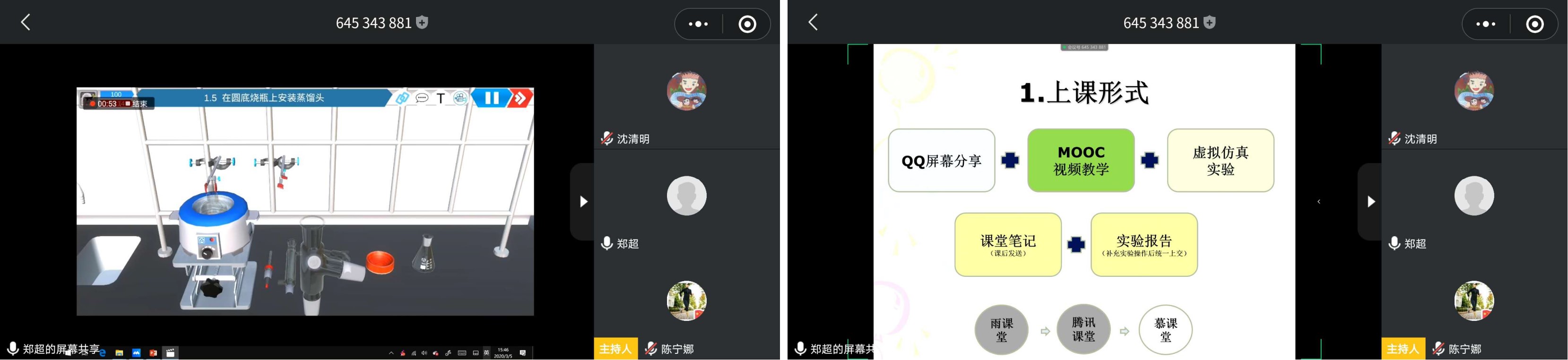 在实验实践课程专场中,郑超老师以《网络教学探索——如何上一堂高质量的有机化学实验课》为主题,结合使用多种上课形式,学生在虚拟仿真实验中模拟完成实验操作,弥补不能自己动手做实验的不足。 张敏老师以《本科毕业设计和学科竞赛在线指导》为主题,分享如何利用在线教学工具更好地指导学生完成毕业设计和竞赛,回答老师们目前存在的疑问;刘玉玉老师以《虚拟仿真项目建设与应用》为主题,详细地介绍了整个虚拟仿真项目的建设过程,分享了建设过程的心得。