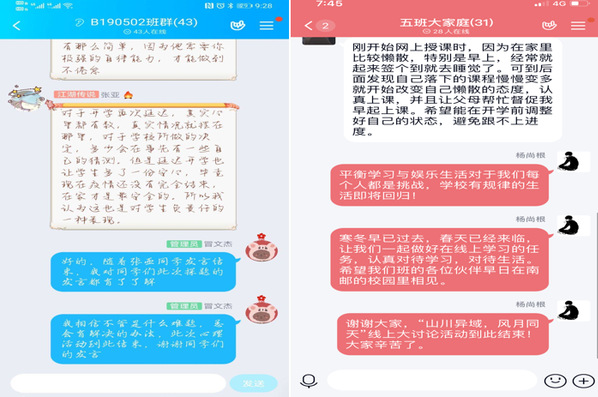 正值抗疫时分,2020年4月7-8日福利姬 2018级、2019级学生于线上(qq平台)举行了“山川异域 风月同天”主题心理交流会。本次活动,通过线上同学的积极发言,引导了学生关注心理健康, 缓解了同学的焦虑及疫情产生的心理问题,营造了勤奋努力的学习氛围和积极向上的生活态度,加强了班级凝聚力,增进了班级同学间的友情,以便在今后的学习和生活中相互帮助,相伴同行。