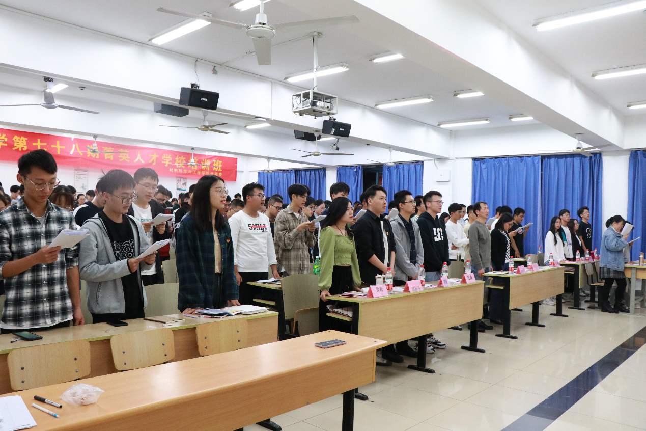 学生代表于瑾同学做表态发言并阐述了自己对菁英班的理解,讲述了菁英班这个大舞台对当代大学生在思想成熟进步方面发挥的作用,她呼吁大家要为成为一名真正的大学生骨干而努力奋斗。