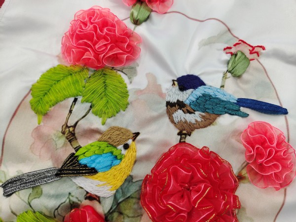 十字绣作品,湫兮如风,大鱼海棠。鸟语花香,一室芬芳。剪不断理还乱,女红技艺仍在。针法多样,针脚缜密,色彩明丽,古典雅致。一丝一缕绣出枝叶繁茂,花开正好,雀鸟灵巧。重拾传统艺能,描绘当下风光。