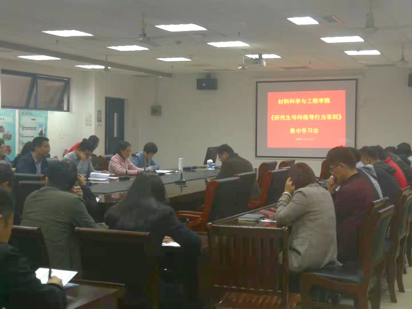 陈淑芬副院长带领全体导师对照《准则》文件,逐条进行深入学习研讨。陈淑芬副院长指出,《准则》中“十不得”规定是导师指导研究生工作的底线、警戒线,不能有任何逾越,她号召认真学习《准则》,争做有理想信念、有道德情操、有扎实学识、有仁爱之心的好导师。