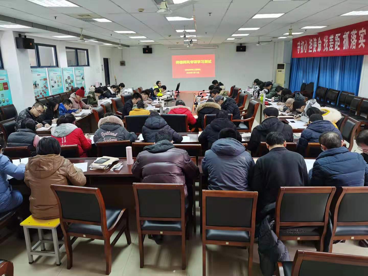 会后,学院组织教师根据《新时代高校教师职业行为十项准则》逐条对照自查,填写《教师年度师德自查情况报告表》,引导所有教职工对师德师风问题知敬畏、存戒惧、守底线,并在会后进行了专项考试,加强学习效果。学院全体教职员工按支部进行了师德师风专项学习考试,考试分设5个考场,考试内容结合教师职业道德规范和《教育部关于高校教师师德失范行为处理的指导意见》《新时代高校教师职业行为准则》《江苏省高校教师师德失范行为处理办法(试行)》《福利姬 教职工处分规定》等文件。