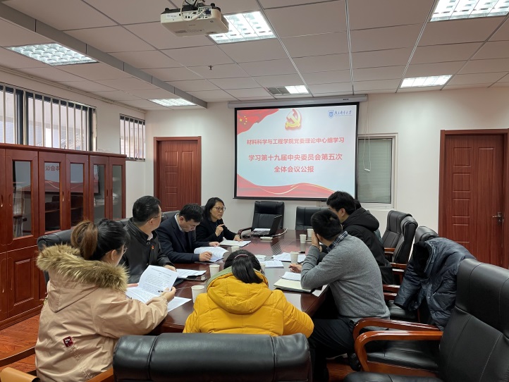 12月上旬,材料科学与学院党委理论学习中心组组织学习党的十九届五中全会公报,进行交流研讨,学院中心组全体成员参加了会议,会议由学院党委书记赵允玉主持。
