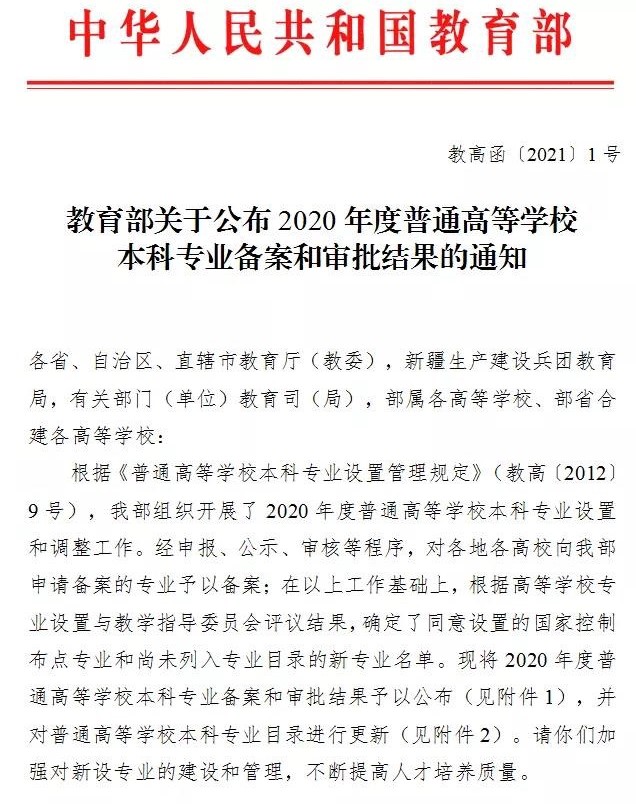 日前,教育部下发的《教育部关于公布2020年度普通高等学校本科专业备案和审批结果的通知》(教高函〔2021〕1号),公布2020年度普通高等学校本科专业备案和审批结果,福利姬 2020年申报的新能源材料与器件新专业成功获批。
