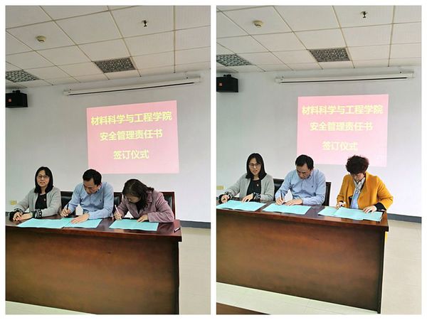 2021年4月13日下午,材料学院在教五413会议室召开全院教职工大会,举行2021年度实验室安全责任书签订仪式,仪明东副院长主持会议。