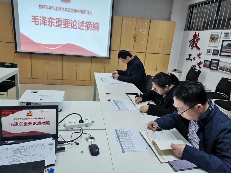 理论学习中心组专题学习了学习书目《毛泽东邓小平江泽民胡锦涛关于中国共产党历史论述摘编》中毛泽东重要论述章节的内容,党委书记赵允玉、副书记张建平、副院长沈清明分别领学了部分章节并作发言交流。