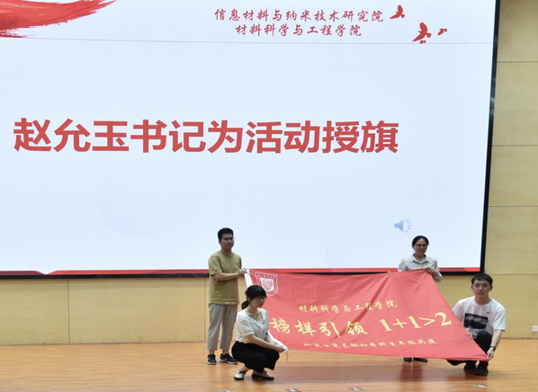 赵书记作总结讲话并为活动授旗,她指出站在中国共产党成立100周年的重要节点,为进一步推进学院党史学习教育走深走实,学院各党支部都积极开展了“我为群众办实事”活动,今天研究生三个党支部以和本科生三个年级共建的形式把“学党史、办实事”常态化,以思想引领为主,以解决问题为纲,以活动效果为重,既帮助本科生也提升自己。学院对此次系列活动充满了期待,共建活动要结合学院人才培养模式,充分发挥学院领导、教师、辅导员、研究生、优秀学生干部的引领示范作用,形成全员育人氛围。赵书记对具体实施工作提出三点要求:研究生党支部要在思想政治教育及党建工作中主动引领,充分发挥研究生党支部的堡垒作用,针对不同年级特点团结共建,形成学生党建工作合力,使大学生思想政治教育效果进一步凸显;研究生党员应发挥“导航员”作用,深入本科学生班级和宿舍,实现“双向驱动”,解决实际问题,形成育人合力;研究生党员要从共建活动中汲取养分,付诸实践,牢记全心全意为人民服务宗旨,更好践行初心使命。
