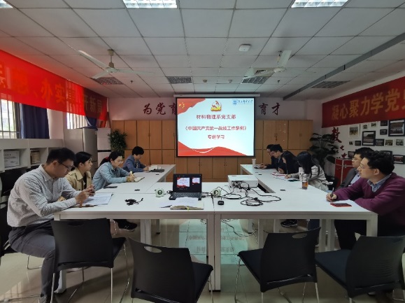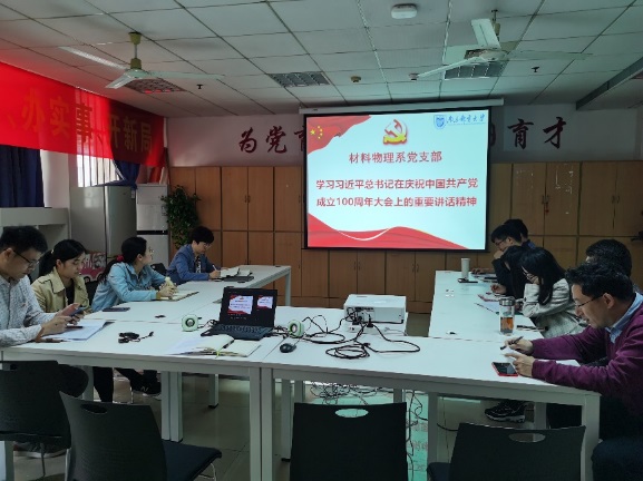 10月27日下午,福利姬 材料物理系党支部在仙林校区教5-101会议室召开支部党员大会,支部党员集中学习了习近平总书记在庆祝中国共产党成立100周年大会上的重要讲话精神、中国共产党统一战线工作条例,并开展了课程思政教学研讨。