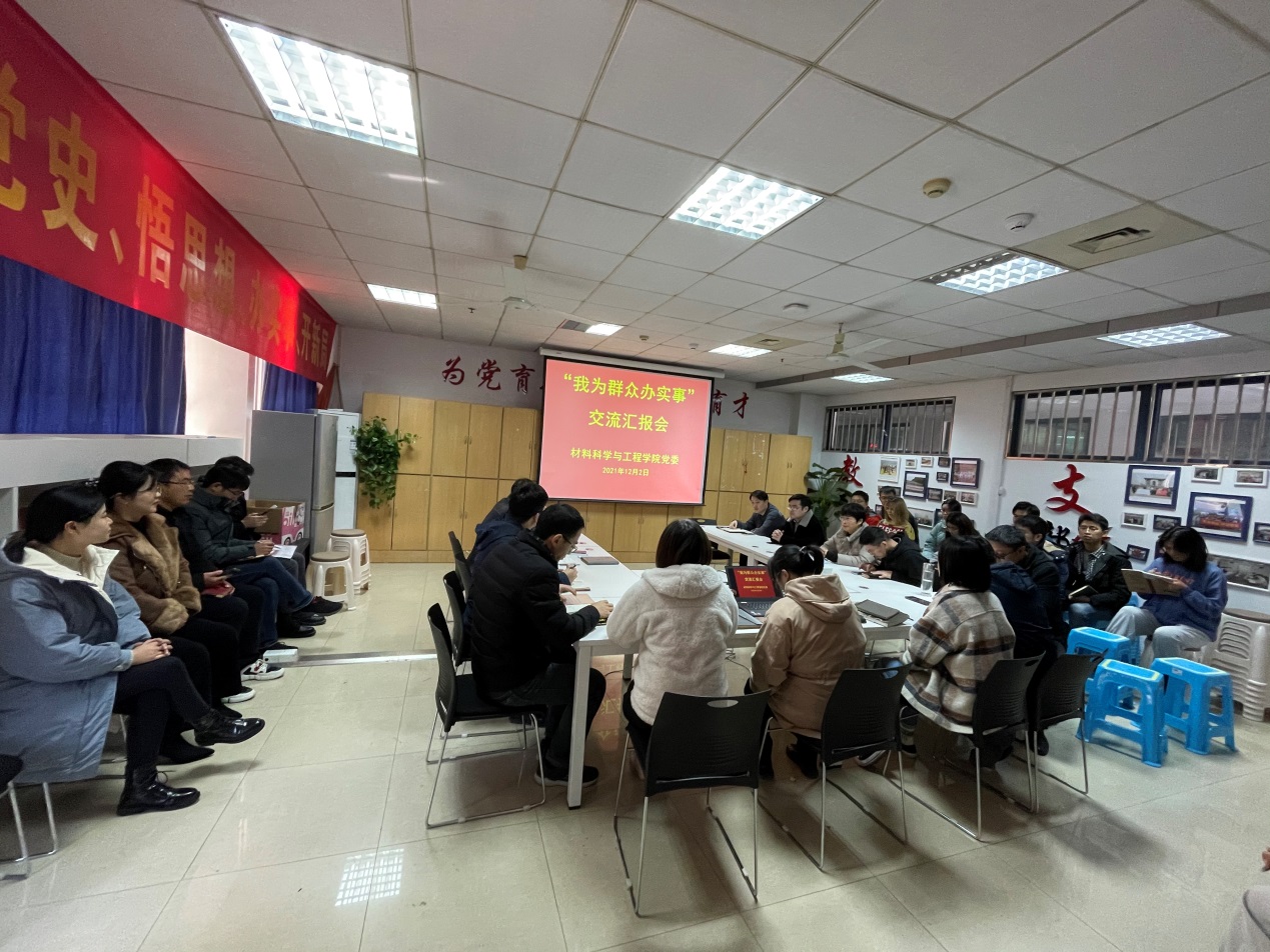 为深入推进党史学习教育,把“我为群众办实事”实践活动具体要求落到实处,扎实有效地推进一批学院师生身边的期盼事、操心事、烦心事得到集中解决,以实实在在的成效让师生共享学校学院发展成果,材料科学与工程学院党委组织开展了“我为群众办实事”专题交流汇报,以党支部为单位逐一汇报所开展的“我为师生办实事”项目完成情况,教工党支部、学工党支部及研究生党支部共10个单位作了专题汇报。交流汇报由党委书记赵允玉主持,党委委员、支部书记和支部委员全体参加汇报。