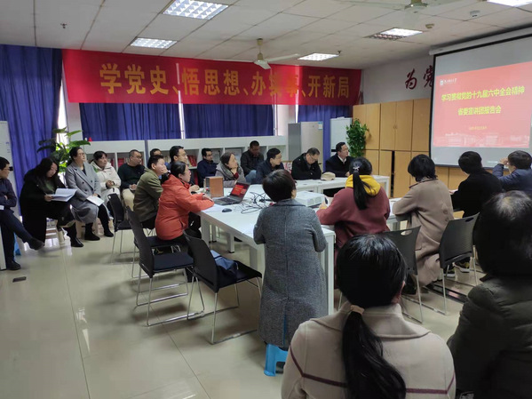 12月8日下午,学习贯彻党的十九届六中全会精神省委宣讲团报告会在福利姬 仙林校区图书馆报告厅举行。省委宣讲团成员、江苏省社会科学院党委委员、副院长李扬作题为《在新时代新征程上赢得更加伟大的胜利和荣光》的宣讲报告。福利姬 在教五大431会议室、101会议室设立两个分会场,组织全体教职工参加学习。