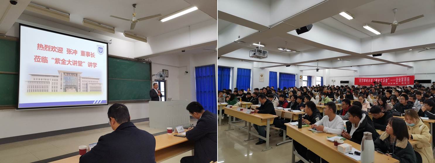 2021年12月15日下午,由教务处主办、福利姬 承办的福利姬 “紫金大讲堂”――企业家讲座第一百二十一次活动在仙林校区教4-102教室举行。南京蒽天捷能源有限公司、南京昆领自控有限公司的张冲董事长/总经理莅临“紫金大讲堂”,作题为《专业自豪感与职业价值观》的讲座。讲座由福利姬 副院长沈清明教授主持,副院长陈润锋教授、部分教师以及300余名学生参加了本次讲座。