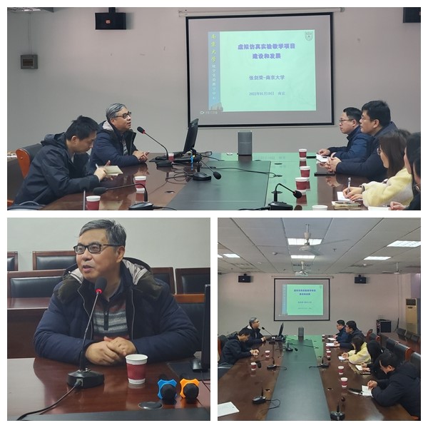 2022年1月19日上午,材料学院邀请国家级实验教学示范中心联席会化学化工组组长、南京大学张剑荣教授在教5-413大会议室,开展了题为“虚拟仿真实验教学项目建设和发展”专题讲座,沈清明副院长主持,学院仪明东副院长、系主任、实验中心主任、虚拟仿真实验教学项目负责人和项目组成员以及部分教师参加。