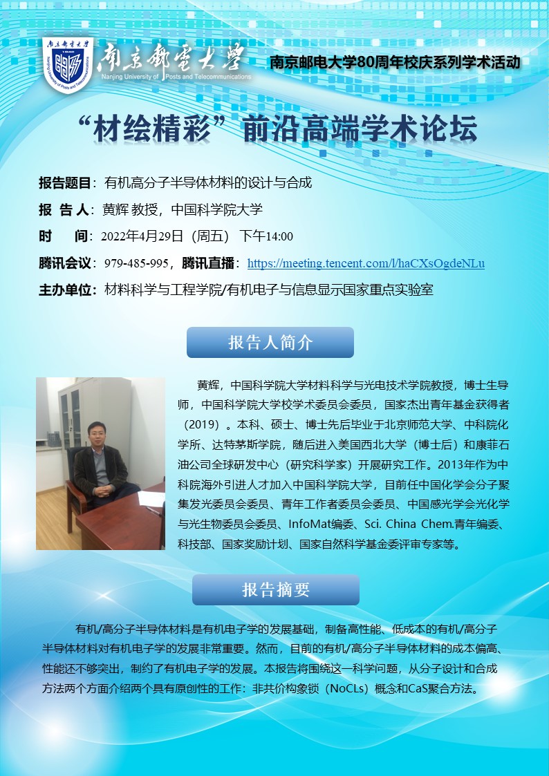 中国科学院大学黄辉教授学术报告