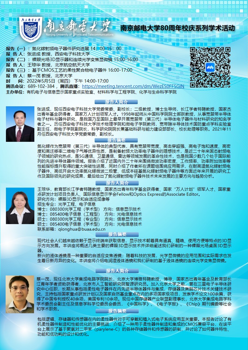 西安电子科技大学张进成教授&北京航空航天大学王琼华教授&北京大学蔡一茂教授学术报告