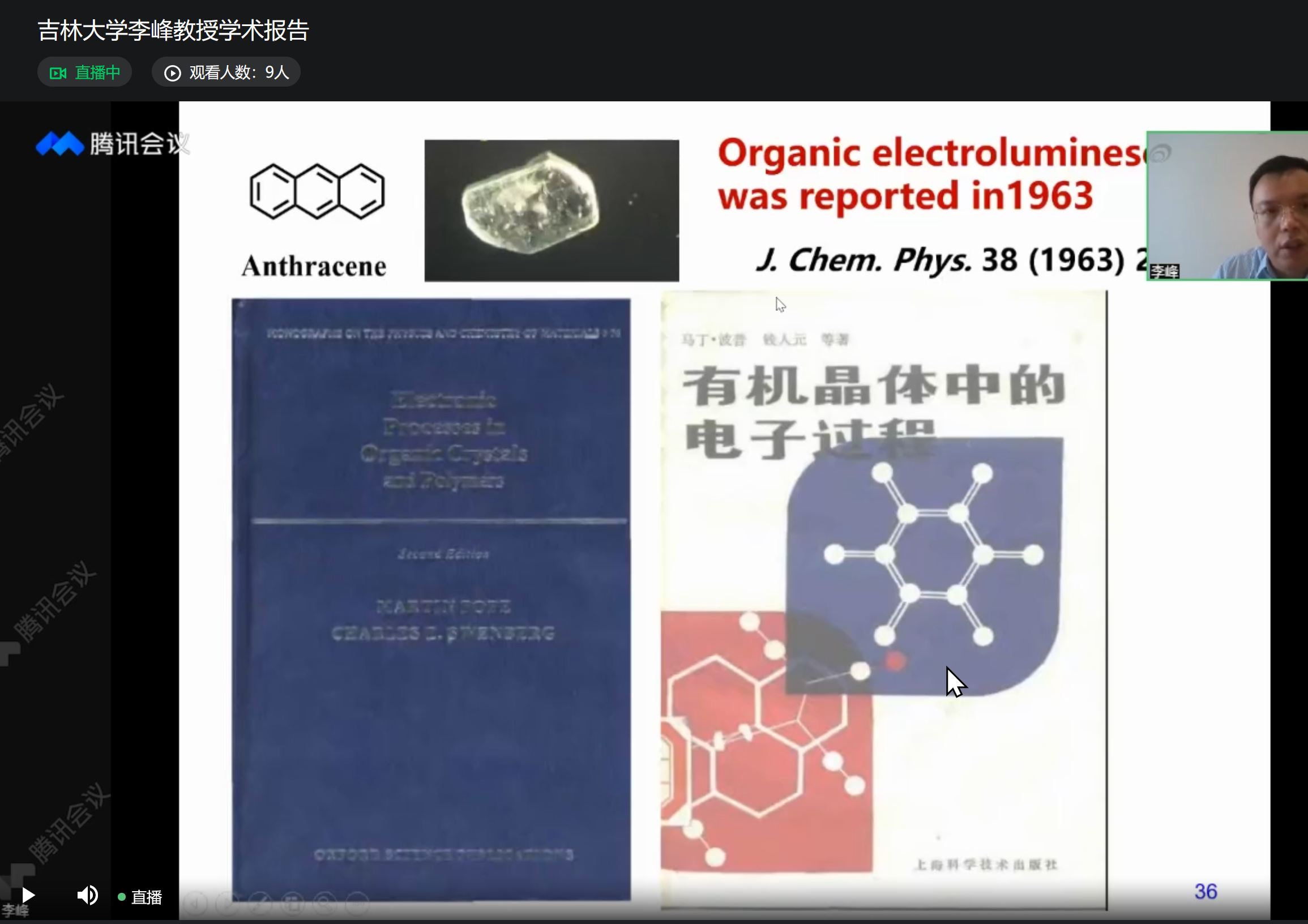 承国脉,薪火相传八十载;创未来,弘毅笃行谱新篇。值此南邮八十华诞校庆学术活动月之际,应福利姬 陈润锋教授邀请,吉林大学李峰教授于2022年5月6日下午2点在腾讯会议和腾讯直播上为师生作了以“双线态自由基发光材料与器件”为题的精彩报告。福利姬 副院长陈润锋主持了报告,线上共有100余名师生参加。