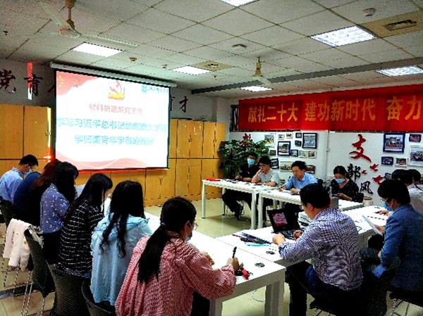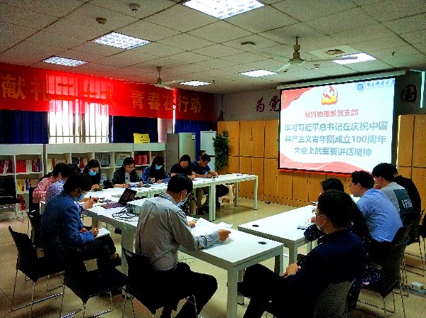 材料物理系党支部于5月26日在教5-101召开学习会,专题学习习近平总书记考察中国人民大学的重要讲话精神、习近平总书记在庆祝中国共产主义青年团成立100周年大会上的重要讲话精神和习近平总书记给南京大学留学归国青年学者的回信精神。会议由支部书记宋春元主持。