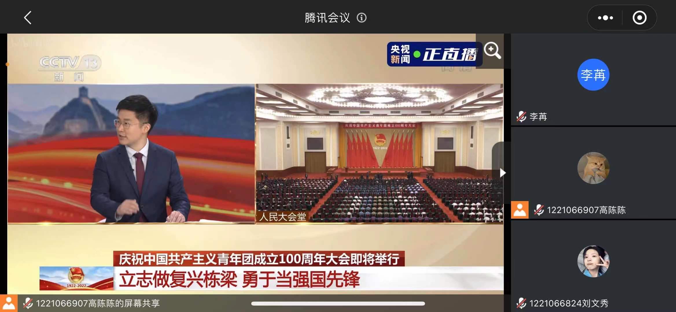 通过直播学习,同学们深刻地感受到了自身肩负的责任和使命。 “青年是整个社会力量中最积极、最有生气的力量”。一个有远见的民族,总是把关注的目光投向青年;一个有远见的政党,总是把组织的基础植根于青年。共青团员们观后表态,当以青春之我,创造青春之中国。