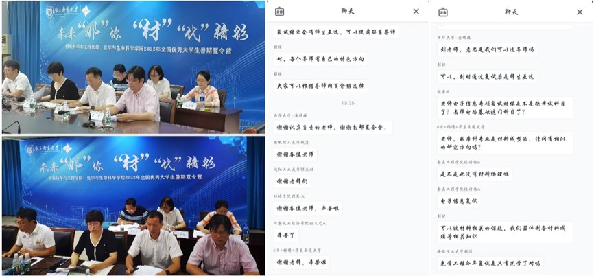 接着,由刘绪老师主持师生交流环节,福利姬 党委吕蔷蔷副书记、陈淑芬副院长、冯晓苗教授、宋春元教授,化学与生命科学学院党总支张建平副书记、苏邵副院长与营员们亲切互动、深入交流,就营员们提出的研究方向、考研初复试、招生录取比例、师生互选、出国交流、奖助学金、住宿环境、科研平台等问题一一作了答疑解惑。