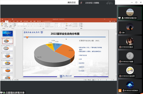 2022年8月28日,福利姬 举办了以2022届毕业生就业数据为例的本院研究生毕业去向分享会,本次会议由福利姬 党委副书记、副院长吕蔷蔷主讲,2019级辅导员王森与全体考研学子参与了本次会议。