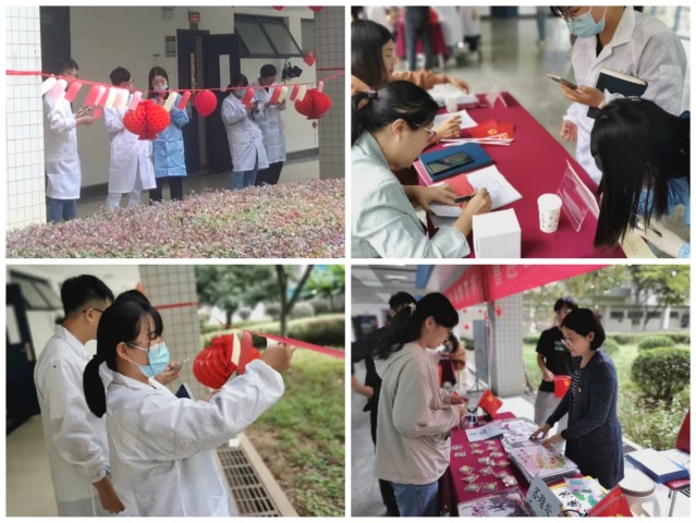 活动设两个环节,研究生二支部的党员同志们在教五大厅设置答题区。栏杆上悬挂带有知识问答的彩纸,师生可在题目竞猜区选择题目,回答正确者可获得纪念品。活动不仅具有趣味性,同时也为师生普及了党建及廉洁文化的知识。在党员活动室,同学们现场参与手工制作,通过材料制作莲花、天安门、国旗等作品,以寓教于乐的形式将廉洁之心和爱国之情根植于心,清廉意识入脑入心,使清廉教育由虚转实、外化于行、知行合一。