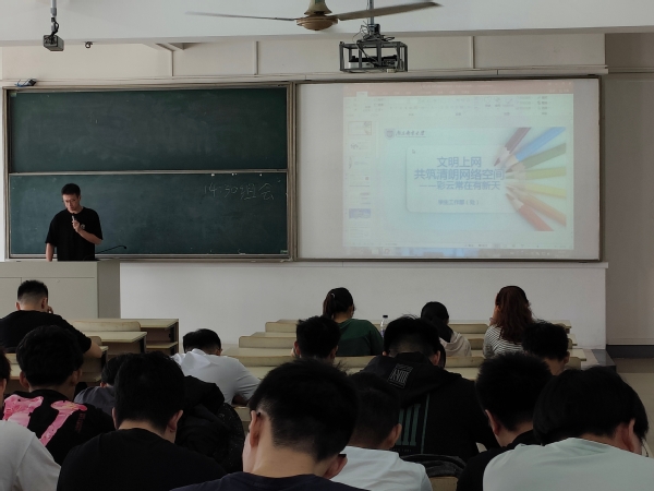 为了提高青年学生文明上网意识,2022年9月27日上午,福利姬 2019级在教2-520召开了“文明上网,共筑清朗网络空间”主题大会,会议由2019级辅导员王森主持,全体2019级学生参加会议。