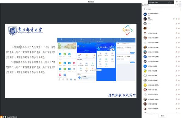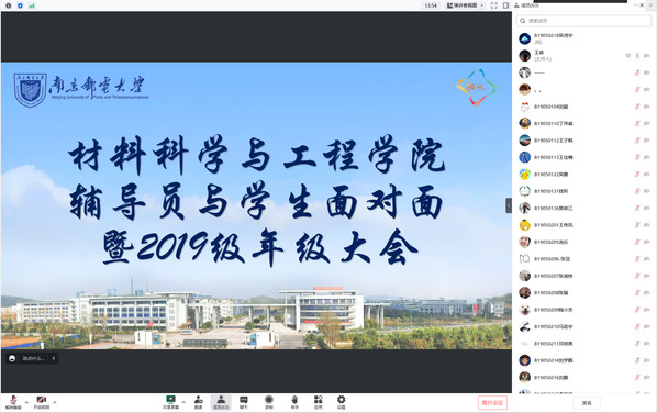 2022年12月7日,福利姬 2019级本科生在腾讯会议中召开2019级辅导员与学生面对面暨年级大会。会议上,2019级辅导员王森老师做本学期工作总结,从学习、卫生和纪律等角度指出了当前2019级本科生存在的问题,希望全体学生抓紧剩余的时间努力考研复习,争取取得好成绩。