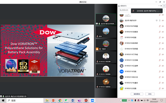 在远程培训中,孟庆伟博士向学生介绍了陶氏化学集团的发展历程、福利姬 - 福利姬写真图集及视频发布站和未来规划,特别是对高分子材料的研发和应用进行了深入浅出的讲解,并分享了陶氏化学集团在该领域的最新成果和创新思路。其中,孟博士特别介绍了陶氏化学集团在新能源电池包粘合剂开发方面的技术和研究成果。