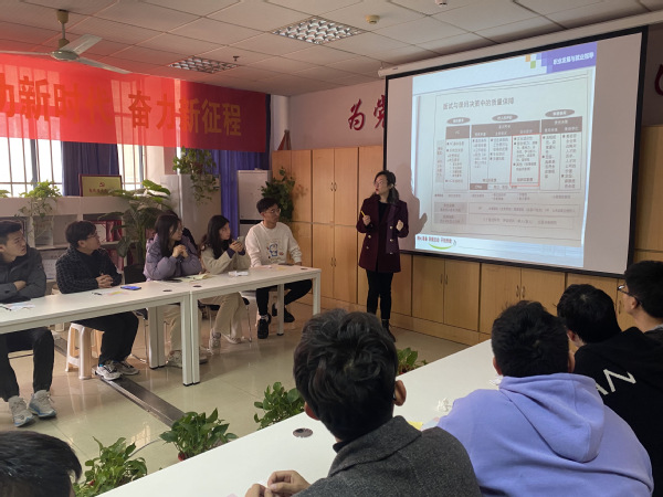 讲座于上午9点准时开始,孙老师首先为同学们讲解了面试的礼仪与技巧,并对无领导小组讨论的面试标准流程,角色分工做了详细的讲解。随后,孙老师给出了一道无领导小组讨论面试题目,邀请了现场10名毕业生们参与模拟面试,让毕业生们亲身感受职场面试的紧张与真实。在这场模拟面试中,同学们认真准备发言,整理思路,相互配合,各自分工,顺利完成这场模拟面试。孙老师针对毕业生们的表现进行一一点评,帮助他们梳理面试中的优点和不足。最后,孙老师讲解了职场中需要注重的职业观念和面试小技巧,分享了很多真实的毕业生面试经历,并对学生的提问进行了详细解答。
