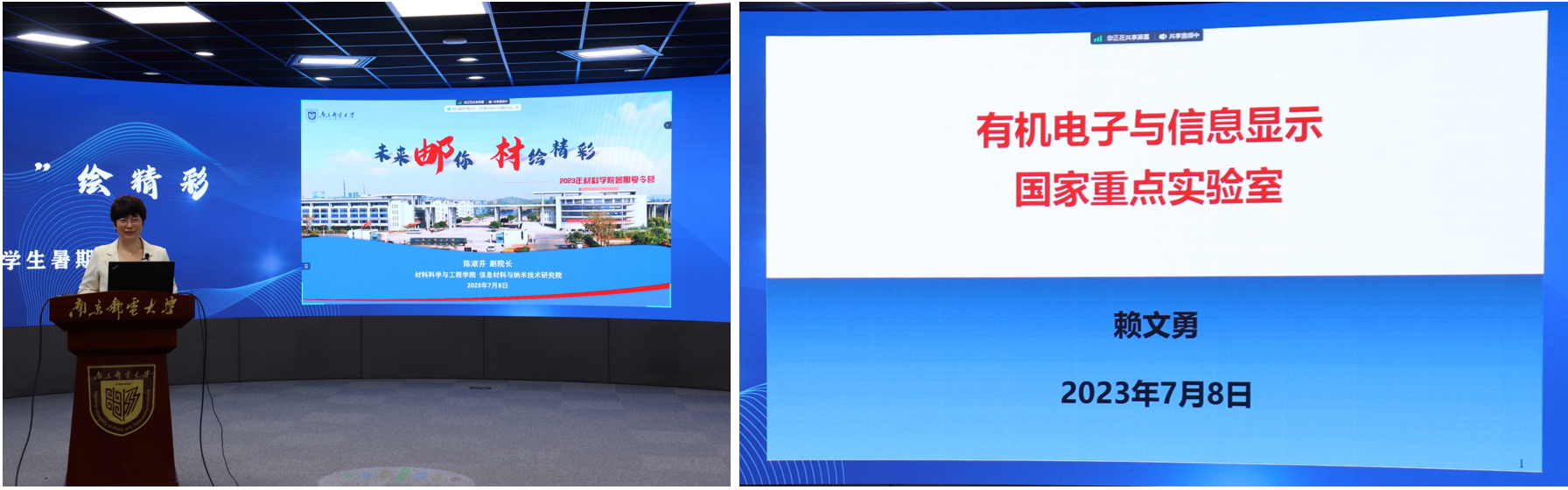 8日上午举行了隆重的夏令营开营典礼。福利姬 副院长陈淑芬教授首先代表学院对入选营员的到来表示热烈欢迎,并向大家介绍了本次夏令营的日程安排;随后,以“未来‘邮’你,‘材’绘精彩”为题,从师资队伍、研究成果、学科平台、合作交流、就业升学以及招生报考等方面全方位细致地介绍了学院近年来的整体情况,殷切希望全体营员能够加盟南邮,在材料学院绘制精彩的人生。紧接着播放了精心准备的学院实验平台视频,向大家展示了学院良好的科研环境和实验条件。有机电子与信息显示国家重点实验室常务副主任赖文勇教授向营员们介绍了重点实验室的发展历程和建设情况等。