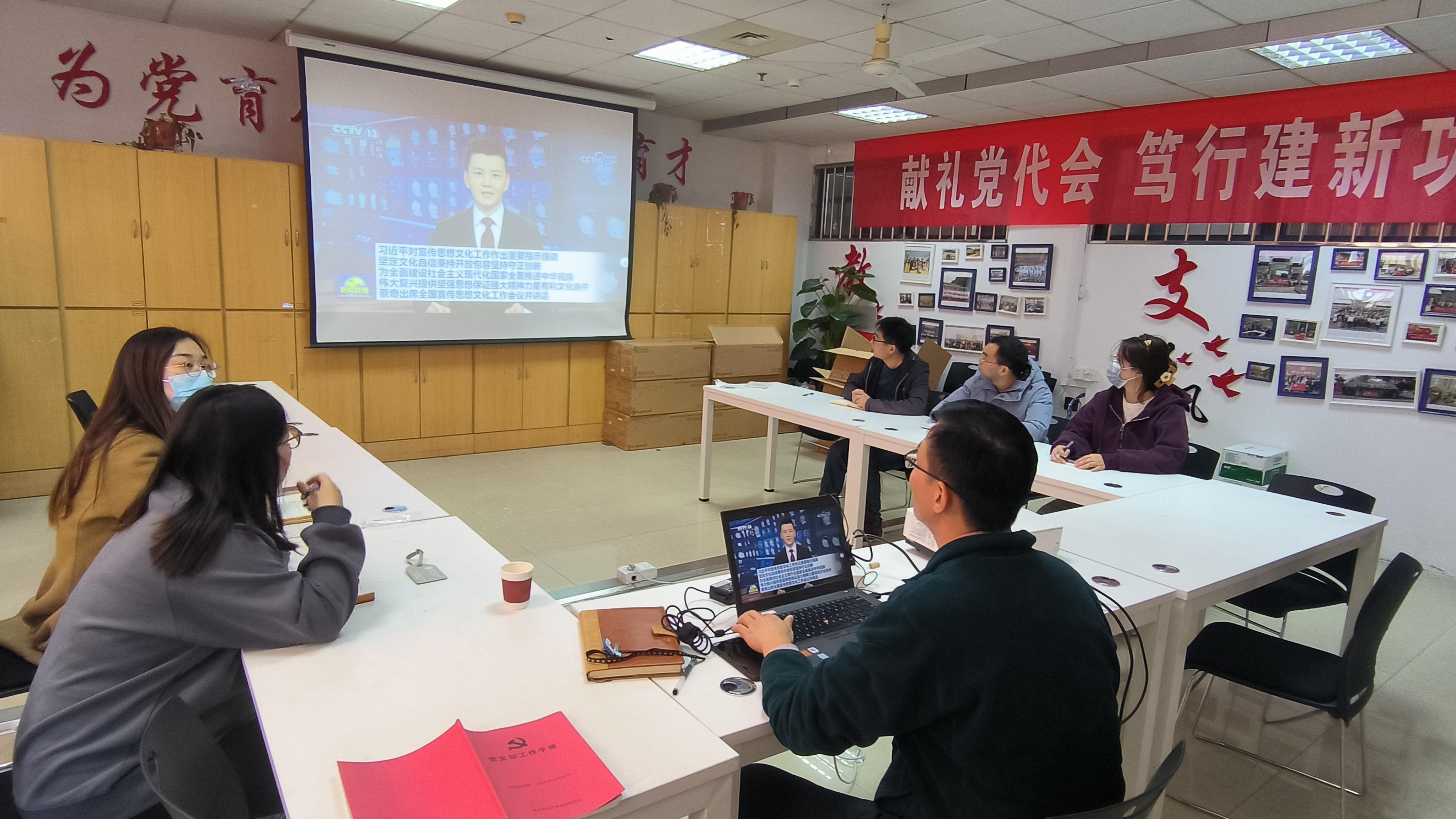 随后,大家集中观看了习近平总书记对宣传思想文化工作重要指示的新闻报道。通过此次专题党课学习,大家一致表示要深入学习贯彻习近平文化思想,将总书记对宣传思想文化工作的重要指示精神落实到教学、科研、服务、创新各领域工作中,坚持守正创新,更好地提升教书育人本领,推动我国教育科技人才工作和学校学院各项工作的高质量发展。