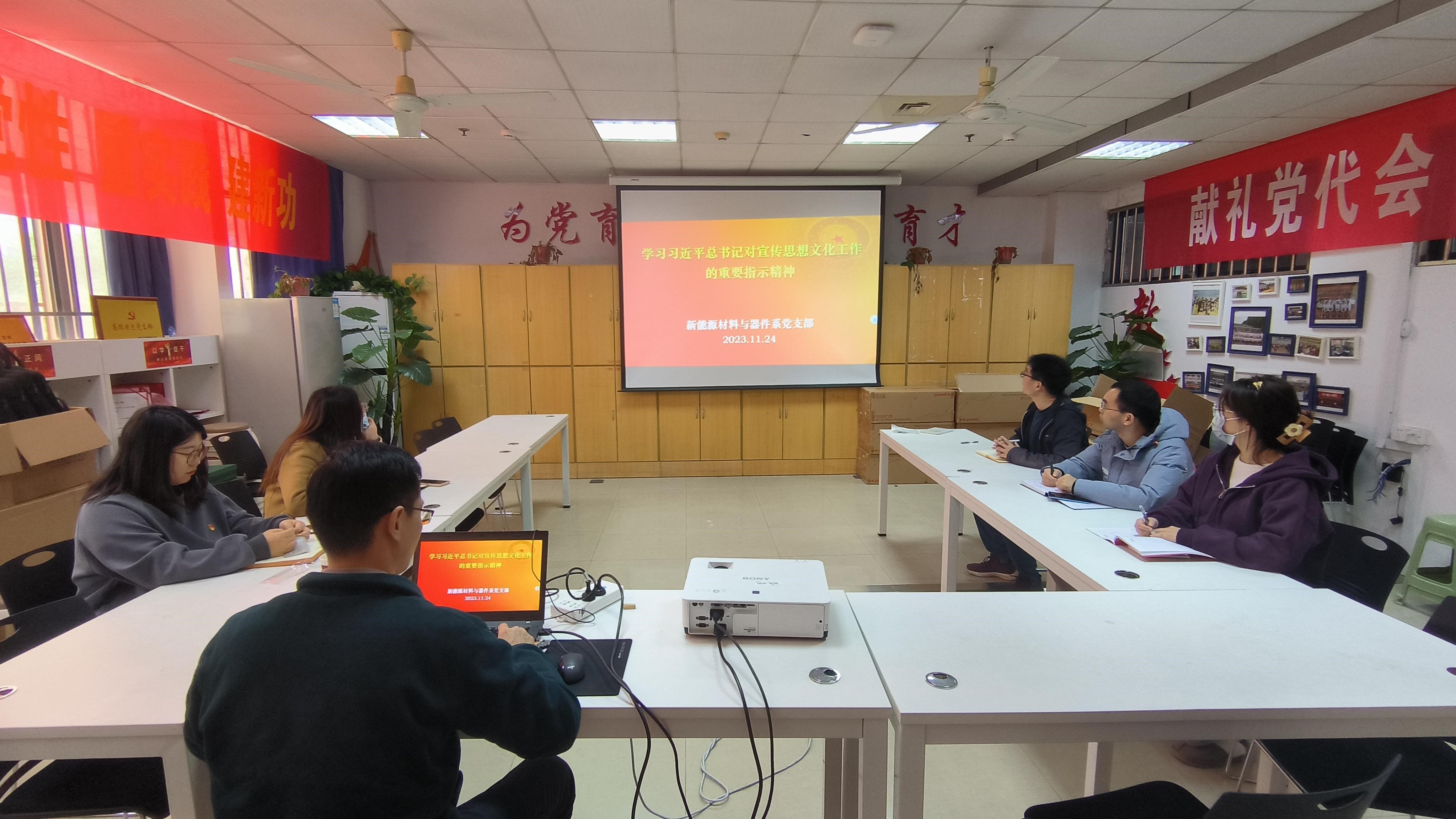 为持续深入学习贯彻习近平新时代中国特色社会主义思想,11月24日中午,新能源材料与器件系党支部在教5-101开展“深入学习贯彻习近平总书记对宣传思想文化工作的重要指示精神”专题党课学习活动。支部书记刘瑞卿主讲,支部党员参加党课学习。