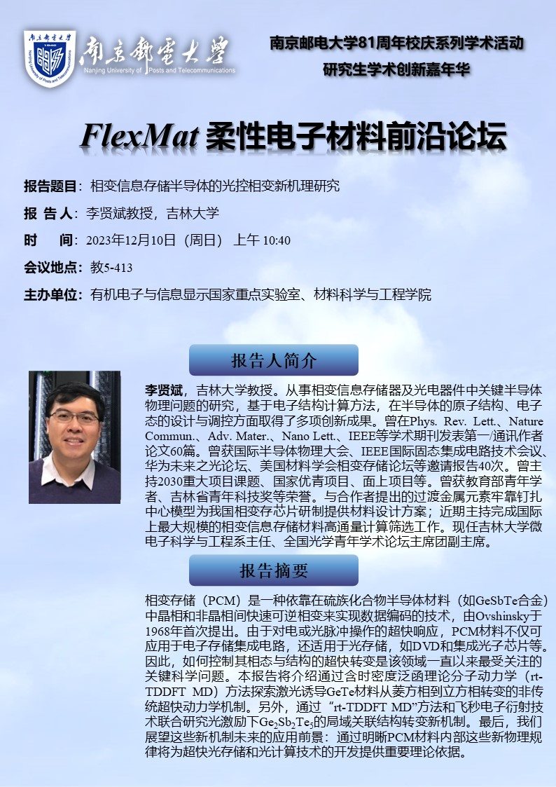 FlexMat柔性电子材料前沿论坛:吉林大学 李贤斌 教授