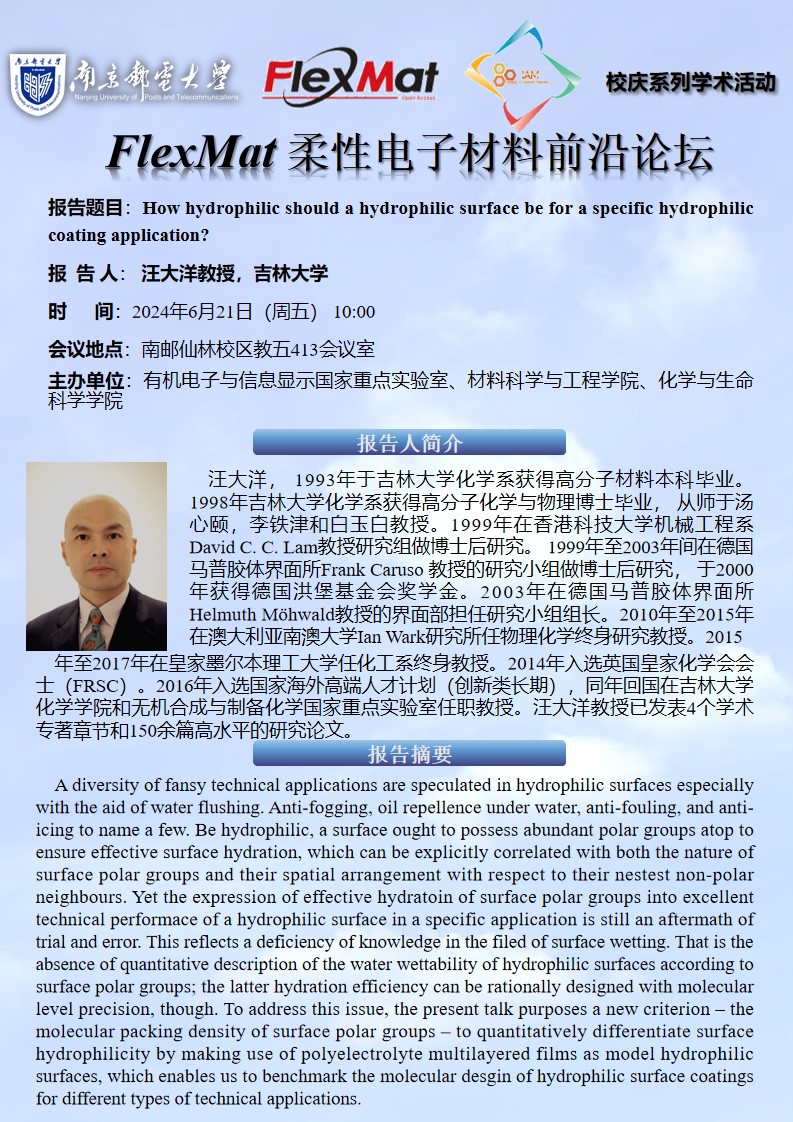FlexMat柔性电子材料前沿论坛:吉林大学 汪大洋教授