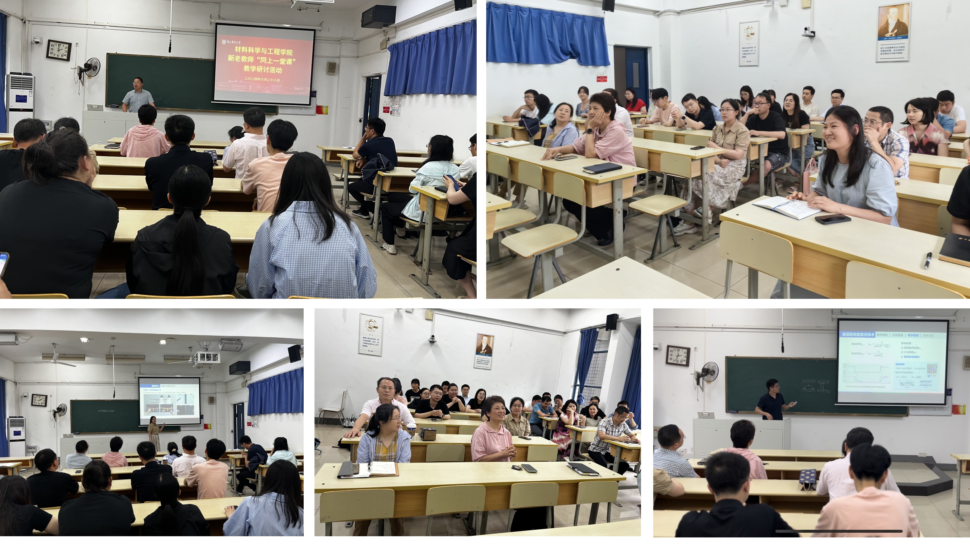 研讨会上,青年教师郭珂和江苏省高校青年教师教学竞赛一等奖获得者李明光老师同上了《VA广视角显示原理》教学节段。郭老师以平板显示领域中最具代表性的商战广告为切入点,介绍了VA显示面板相较于IPS显示面板所具有的不可比拟的优势,并条分缕析地讲解了VA广视角显示技术的知识点。宋老师对郭老师清晰的授课思路及良好的教姿教态给予了充分的肯定,并提出了上课过程中可以加强与学生的互动交流、优化板书设计等针对性的建议。宋老师从自己多年的教学经验出发,分享了自己的教学心得。她认为,课程内容源于教材并高于教材,希望各位青年教师要深刻理解教材,对课程内容之间的逻辑关系要熟读于心,这样才能将知识更好的传授给学生。